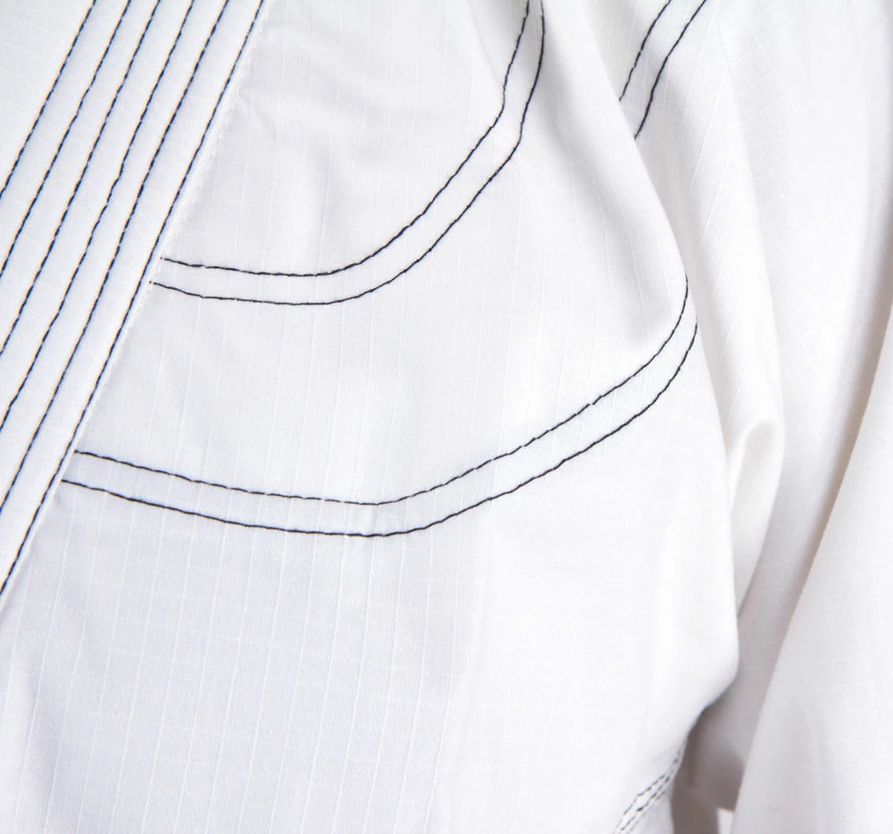 It is also a perfect choice for athletes training on hot, humid days when a lighter uniform is preferred. The fabric is a breathable, cotton canvas reinforced with stitching in typically stressed areas. This makes the uniform a light-weight option for training, without risking durability. The top is one piece of fabric with regular collar thickness. Standard draw-string pants. Prevent any significant shrinkage of the uniform by washing in lukewarm water and air-drying.