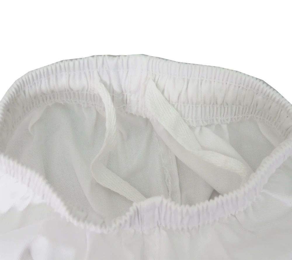 White Lightweight traditional Karate uniform with elastic waistband and hidden drawstring. Perfect for beginners. This uniform is constructed of 5 oz cotton-polyester fabric for breathabilityWhite belt included.