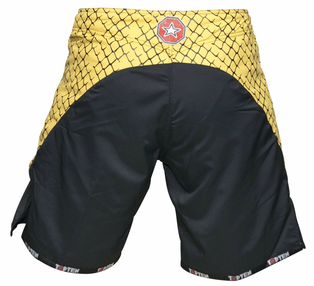 The latest cut and design. These superior quality shorts are very comfortable to wear for both training and competing. The blend of materials used to create these shorts make them very durable, slightly stretchy, and soft. The microfibers are slightly water resistant, so liquids bead up and roll off. They also dry quickly after training. These shorts are recommended for all uses in and out of the ring.