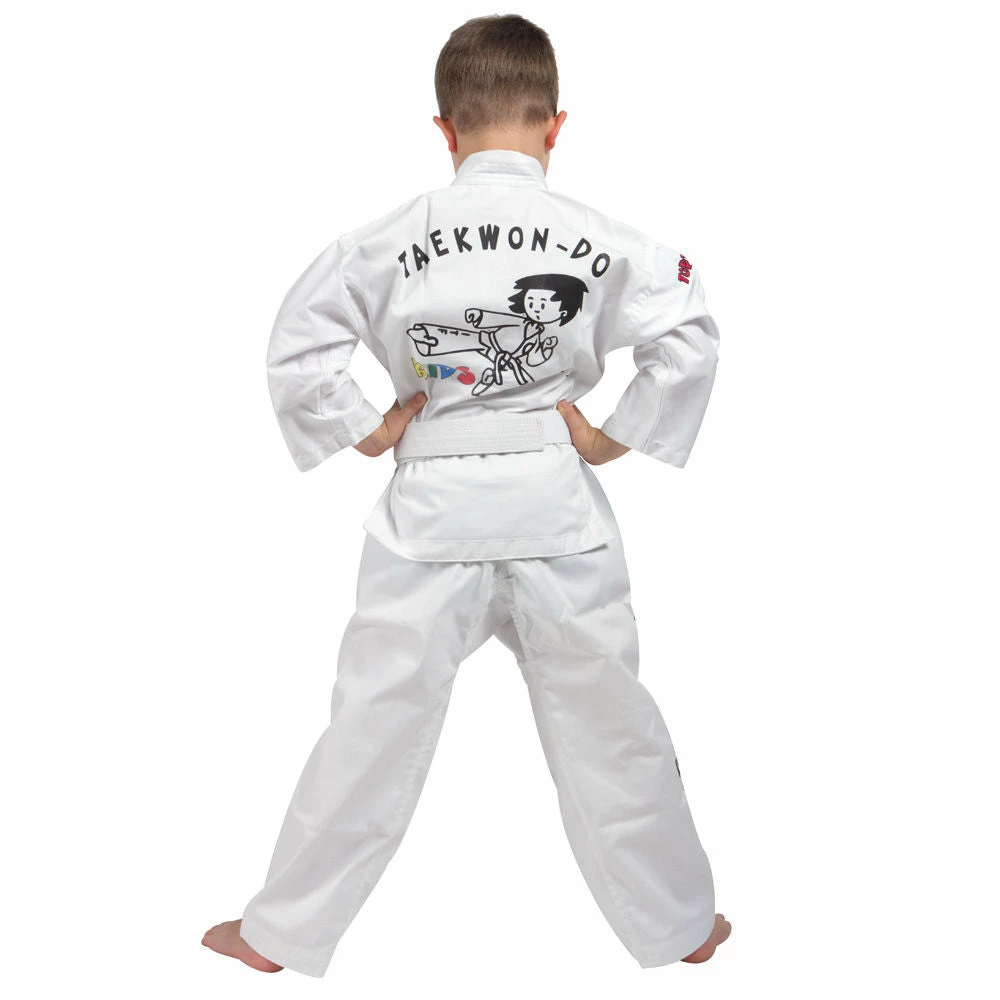 This is the TOP TEN premium, ITF approved, Taekwon-Do KiDS student uniform (dobok), This uniform is made of a high quality, durable, wrinkle resistant cotton/polyester blend fabric.