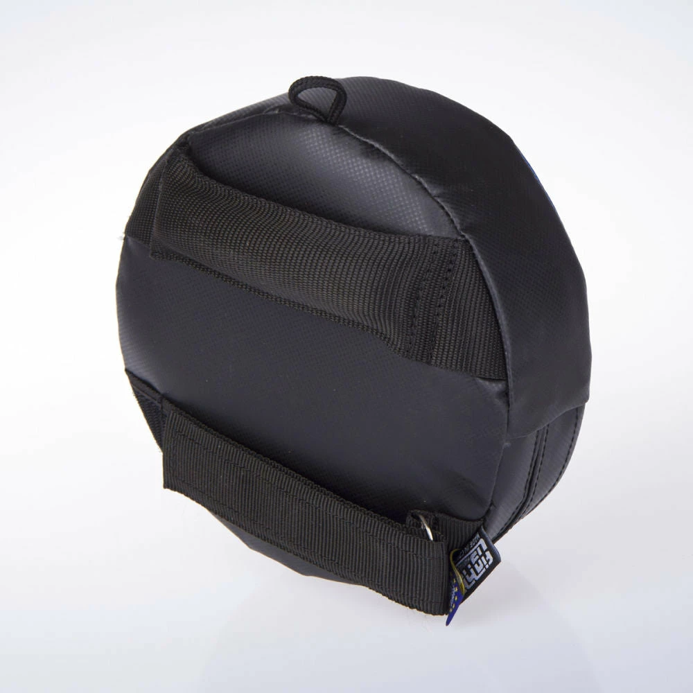 Fighter Blue/Black Junior Round Target Mitt is about two inches smaller than our regular round mitt and four tenths of an inch thinner. The junior mitt is made lighter and smaller: easier to use for small people and smaller for higher accuracy. The junior mitt provides a stiff shock-resistant area to absorb strikes. The outer Red and Black PVC surface covers an inner solid foam core. This mitt comes with a firm foam core hand grip and hook and loop adjustable Velcro wrist strap; to give the wearer a comfortable and secure hand hold position.